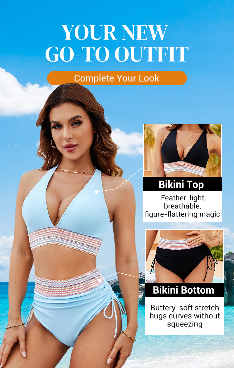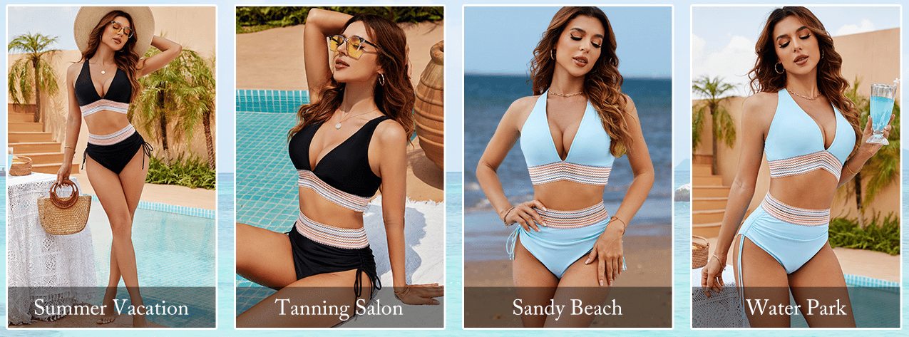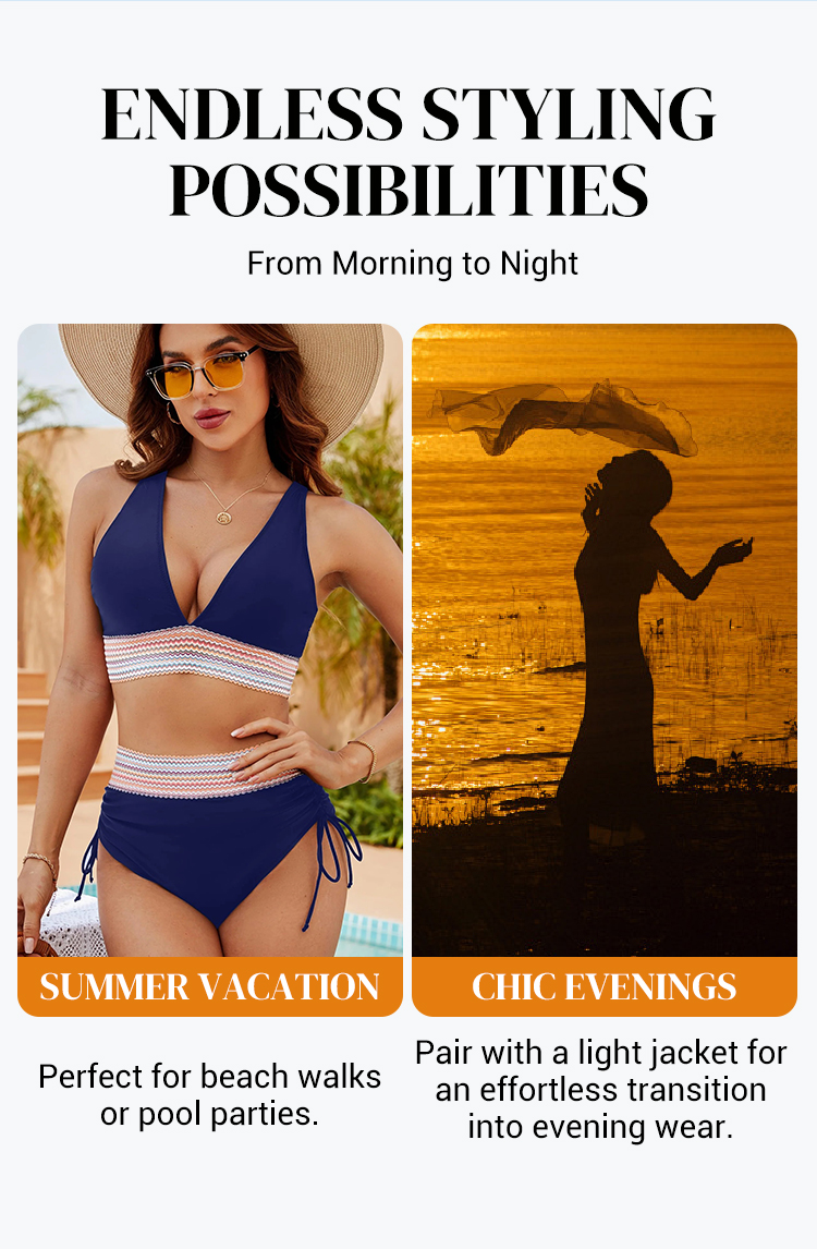 Detta bikiniset är det perfekta badplagget för strandsemestern, poolpartyn och vattensportaktiviteter. Det är utformat för att få dig att känna dig självsäker och snygg, oavsett om du slappar, simmar eller njuter av en semesterort.
