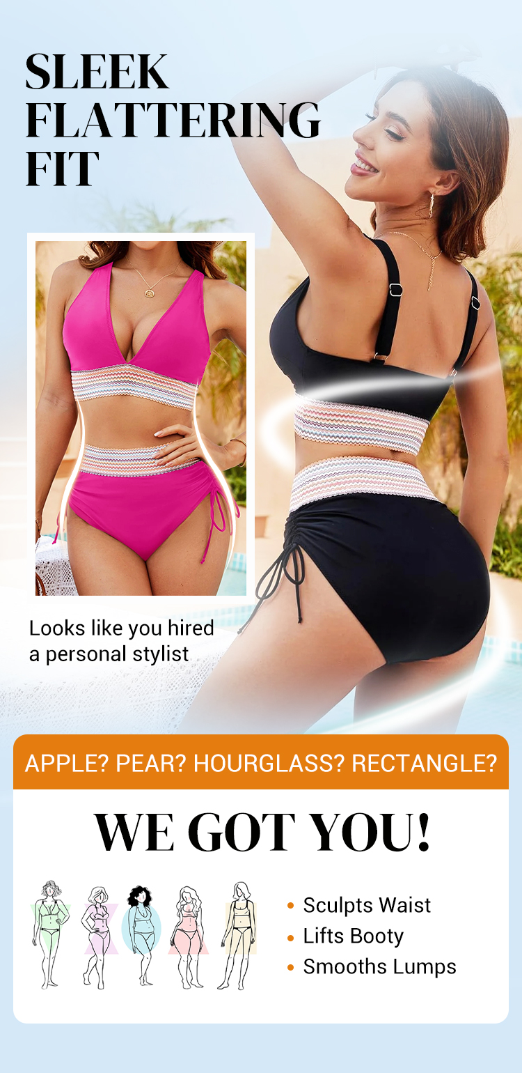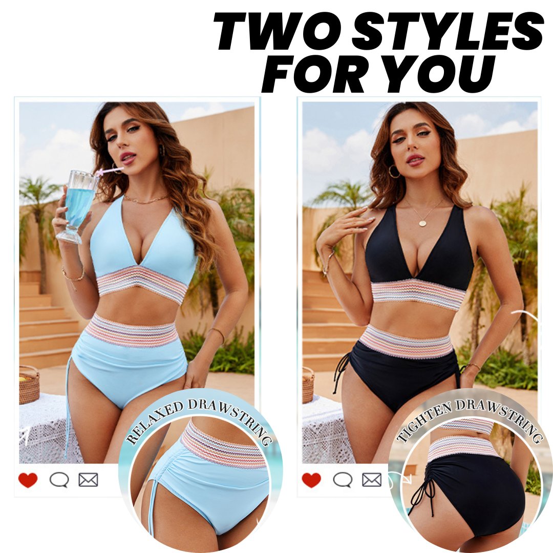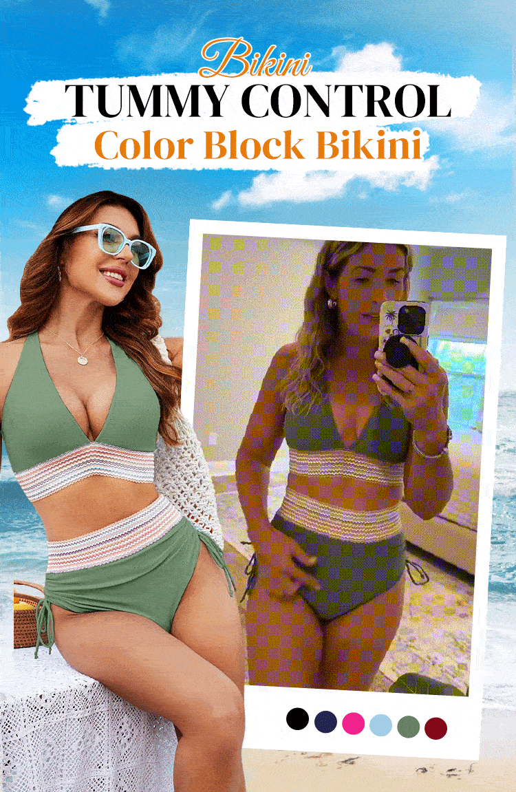 ⌛Denna veckas specialerbjudand🔥2025 Magkontroll Bikiniset med hög halsringning och färgblock