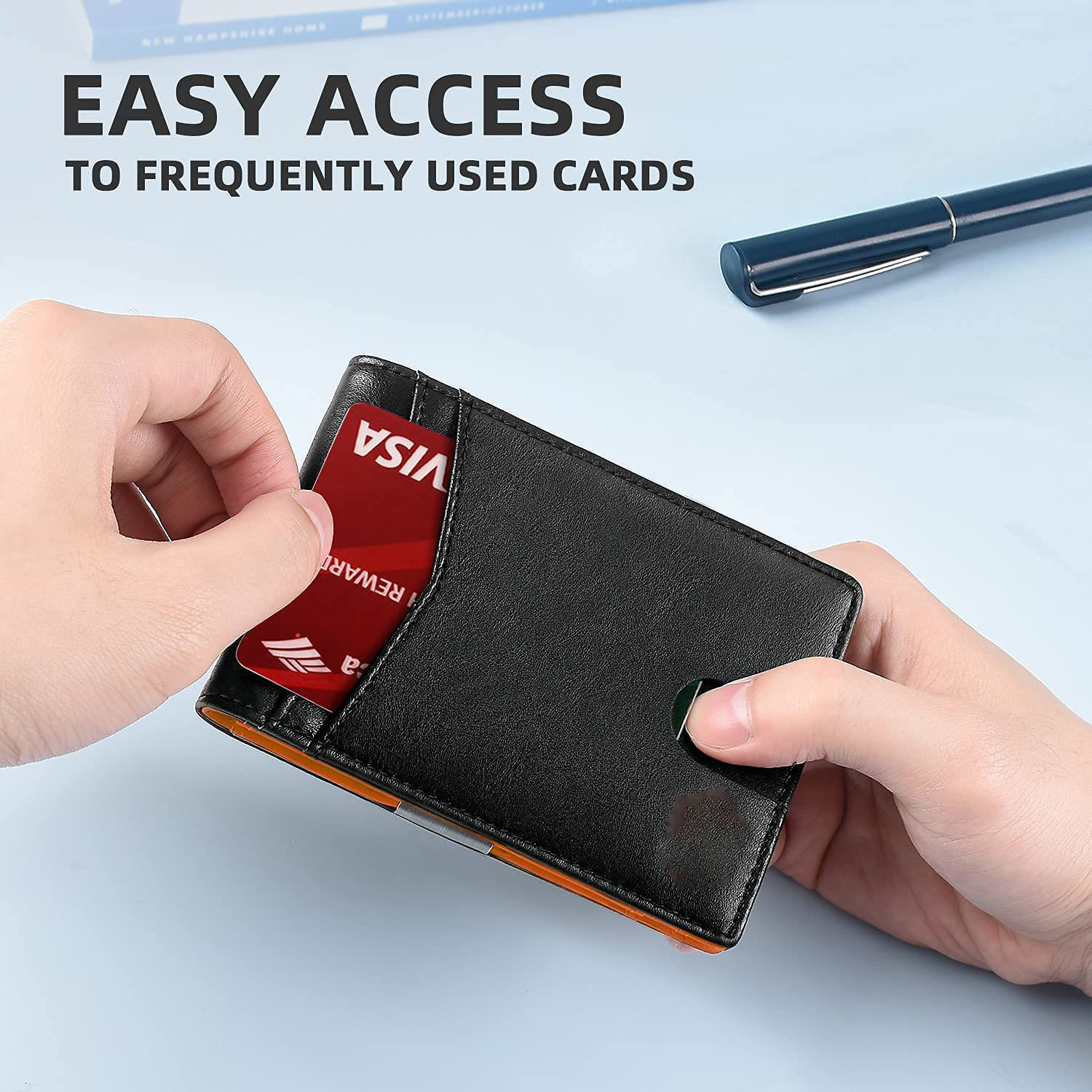 Den eleganta plånboken har flera kortfack och ett separat fack på ytan så att det mest använda kortet alltid finns till hands.