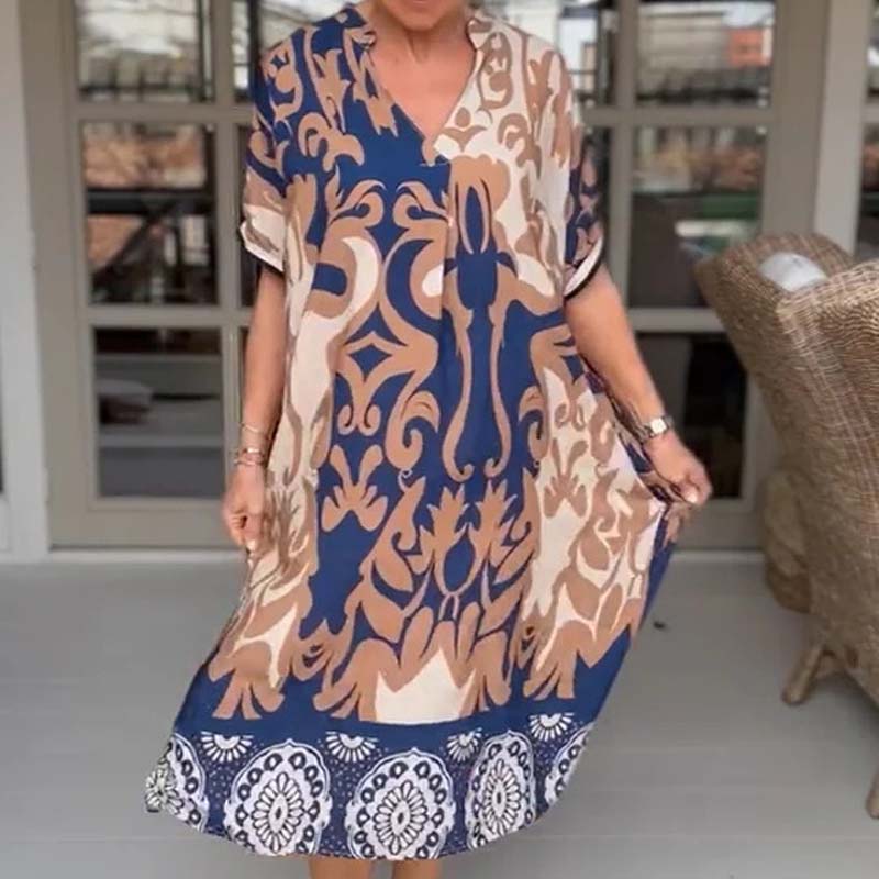 Kliv in i avslappnad elegans med boho-klänningen. Designad för att framhäva dina kurvor och ge en bekväm, lätt passform, smickrar denna klänning utan att tynga ner dig. Det iögonfallande trycket ger personlighet, medan V-ringningen skapar en graciös silhuett. Oavsett om du är på väg till brunch eller ett speciellt tillfälle, kommer denna mångsidiga midiklänning att få dig att se ut och känna dig så bra som möjligt.
