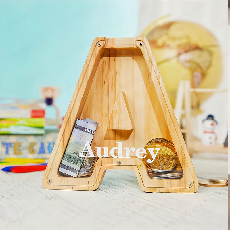 Om du vill öppna banken, skruva av och ta bort akrylskyddet. Dessutom, eftersom det är naturligt trä, är strukturen annorlunda.