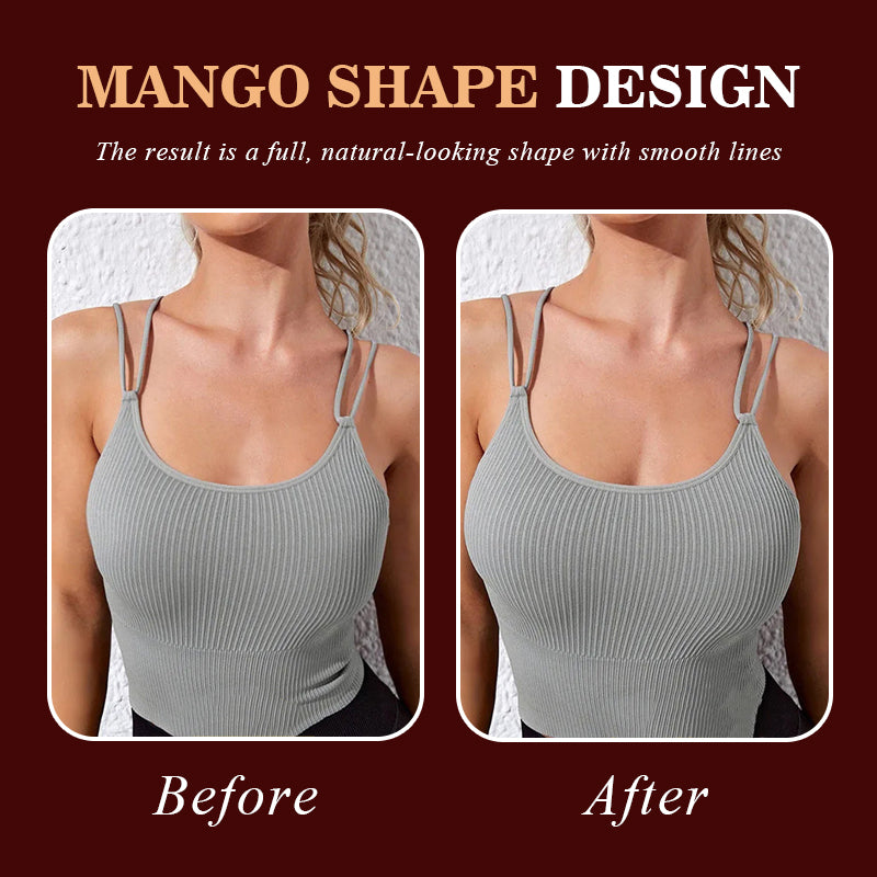 Den distinkta mangoförmiga konturen smälter in i bystens naturliga kurvor och kompletteras av ett centralt transparent spänne. En mjuk fastsättning samlar och lyfter försiktigt, vilket skapar ett tredimensionellt, fylligt utseende med mjuka linjer. Den visuella effekten är naturlig och diskret, elegant och raffinerad ✨.