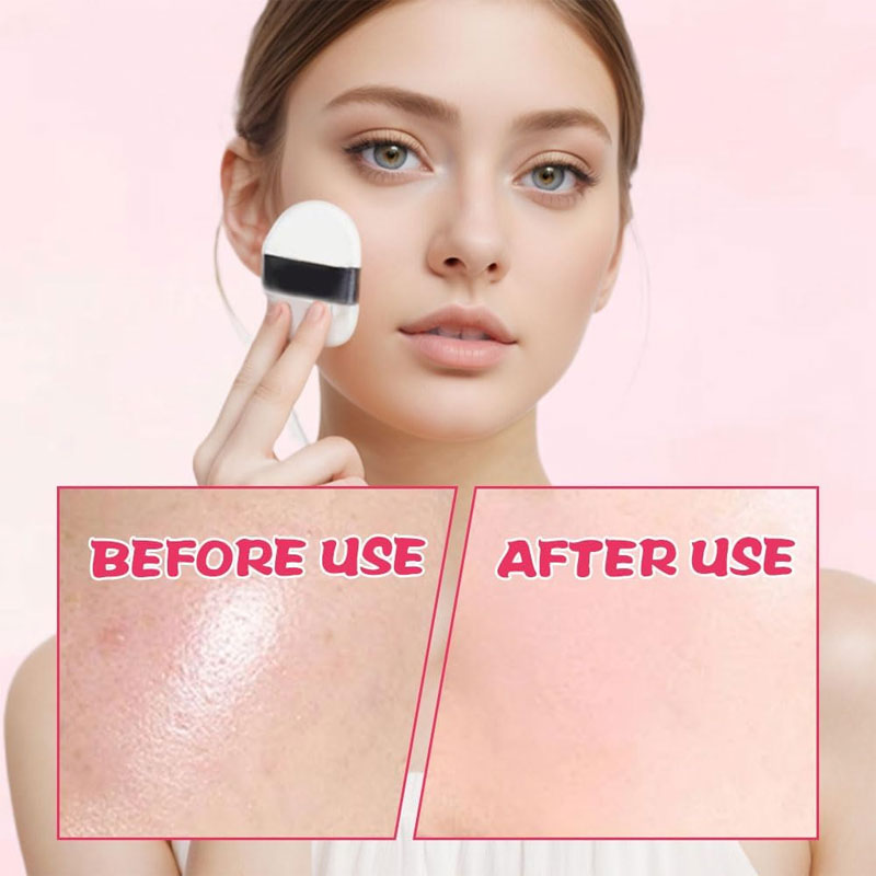 - Damma lätt över ansiktet, med fokus på T-zonen eller områden där du behöver extra kontroll över glansen.