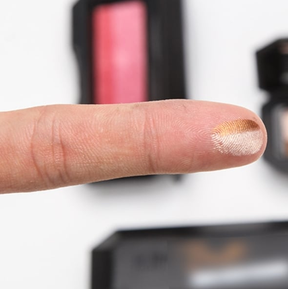 - Svep försiktigt med ögonskuggsborsten över den tvÄfÀrgade ögonskuggan.