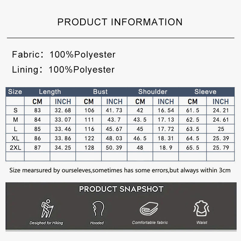 - Vattenavvisande ytterlager: Kappan Àr tillverkad av 100 % polyester och avvisar lÀtt regn och dimma, sÄ att du hÄller dig torr och bekvÀm Àven pÄ ovÀntat regniga dagar. Nu behöver du inte lÀngre stressa efter ett paraply vid första droppen!