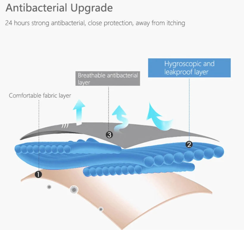 2023 Senaste design, absorberar snabbt och låser vätskor och håller dina underkläder torra, ingen lukt hela dagen!