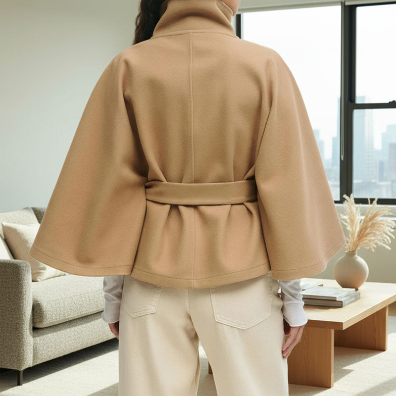 ⚠Mode enfÀrgad cape-kappa med stÄkrage och bÀlte