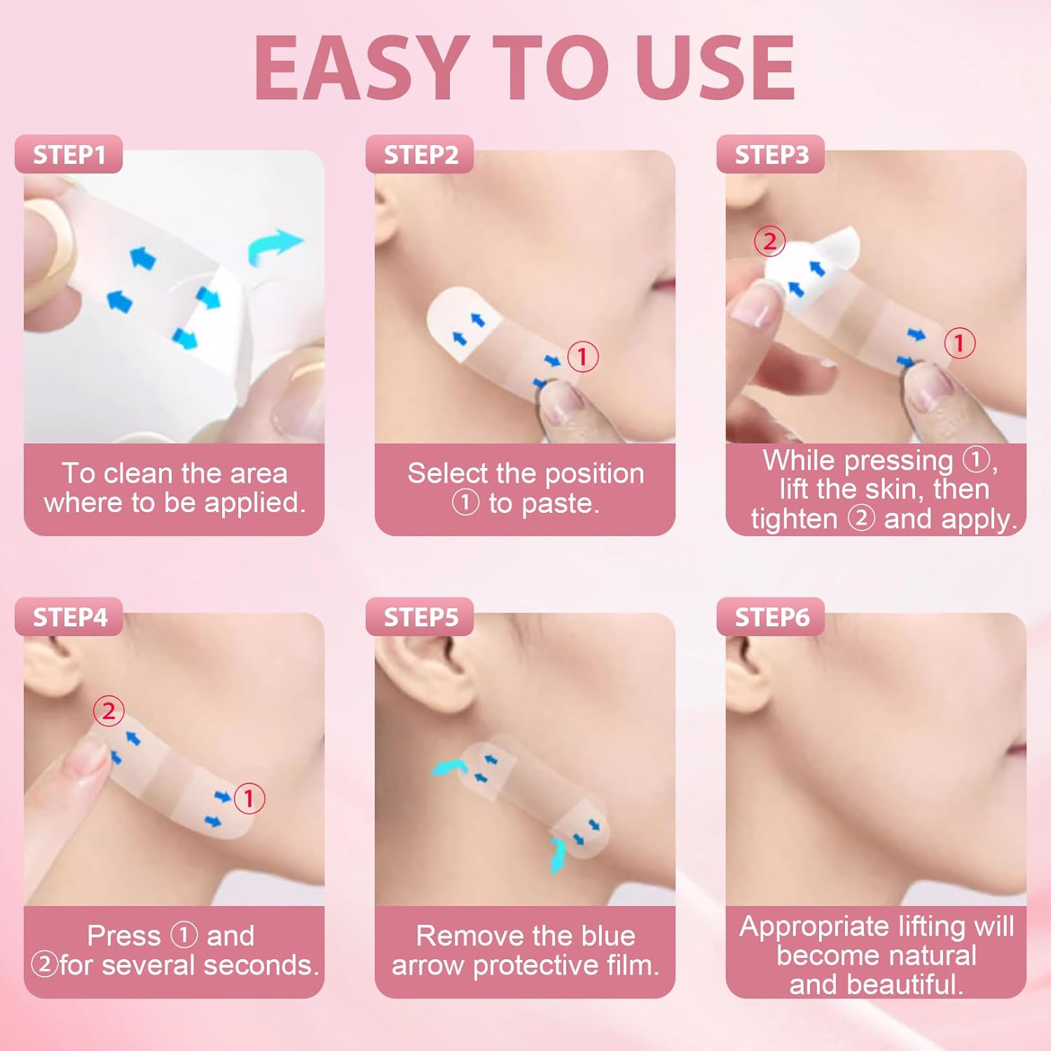 ❣️【Easyytouse】 Placera bara ena änden av ansiktslyftningstejpen på huden, dra sedan huden 1 - 2 tum bakåt och tryck fast uppåt för omedelbara resultat! Se till att ditt ansikte är fritt från smink eller olja innan du applicerar ansiktslyftningstejpen osynligt. Som en vänlig påminnelse kommer det att göra lite ont när du drar av den, så du kan värma upp den eller mjuka upp den med en sminkborttagare innan du tar bort den.