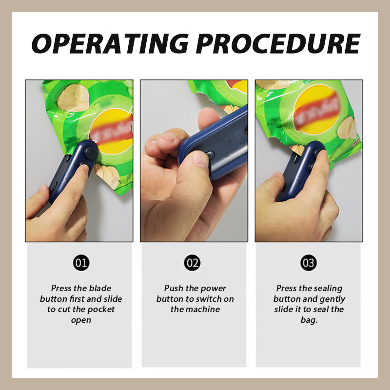 🔒 Säker försegling: Med bara en enkel tryckning skapar vår försegling en lufttät försegling som låser in färskhet och smak, vilket håller dina snacks krispiga och läckra under längre perioder.